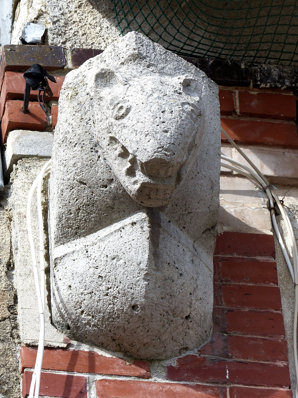 Il signale sans doute cette tête grotesque qui orne une façade de maison, comme d'autres figurines malicieuses ornent ailleurs les modillons des corniches, les miséricordes des stalles d'église et les têtes de chenets.