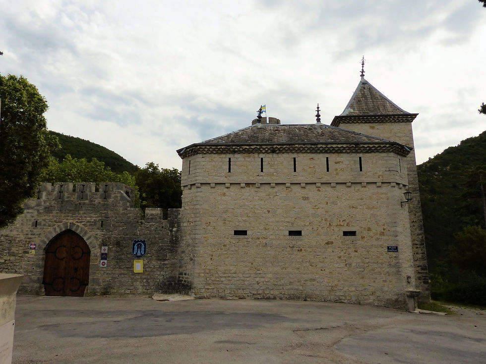 Le château d'Aulan sur l'emplacement d'un oppidum dominant la vallée du Toulourenc, a été plusieurs fois remanié (les premières traces remontent au XII ème siècle). Il constituait un point fort du dispositif stratégique des seigneurs de Mévouillon, on pouvait d'ailleurs communiquer avec la maison mère par signaux optiques. Des difficultés financières amèneront les Mévouillon à perdre leur baronnie et conduisirent Raymond IV à céder Aulan à son voisin Hugues de Montbrun. En 1635, François-Marie de Suarez épouse Isabeau de l'Espine, héritière du château d'Aulan qu'elle apporte en dot à son mari. Peu à peu, le château subit des modifications et devient petit à petit moins défensif.