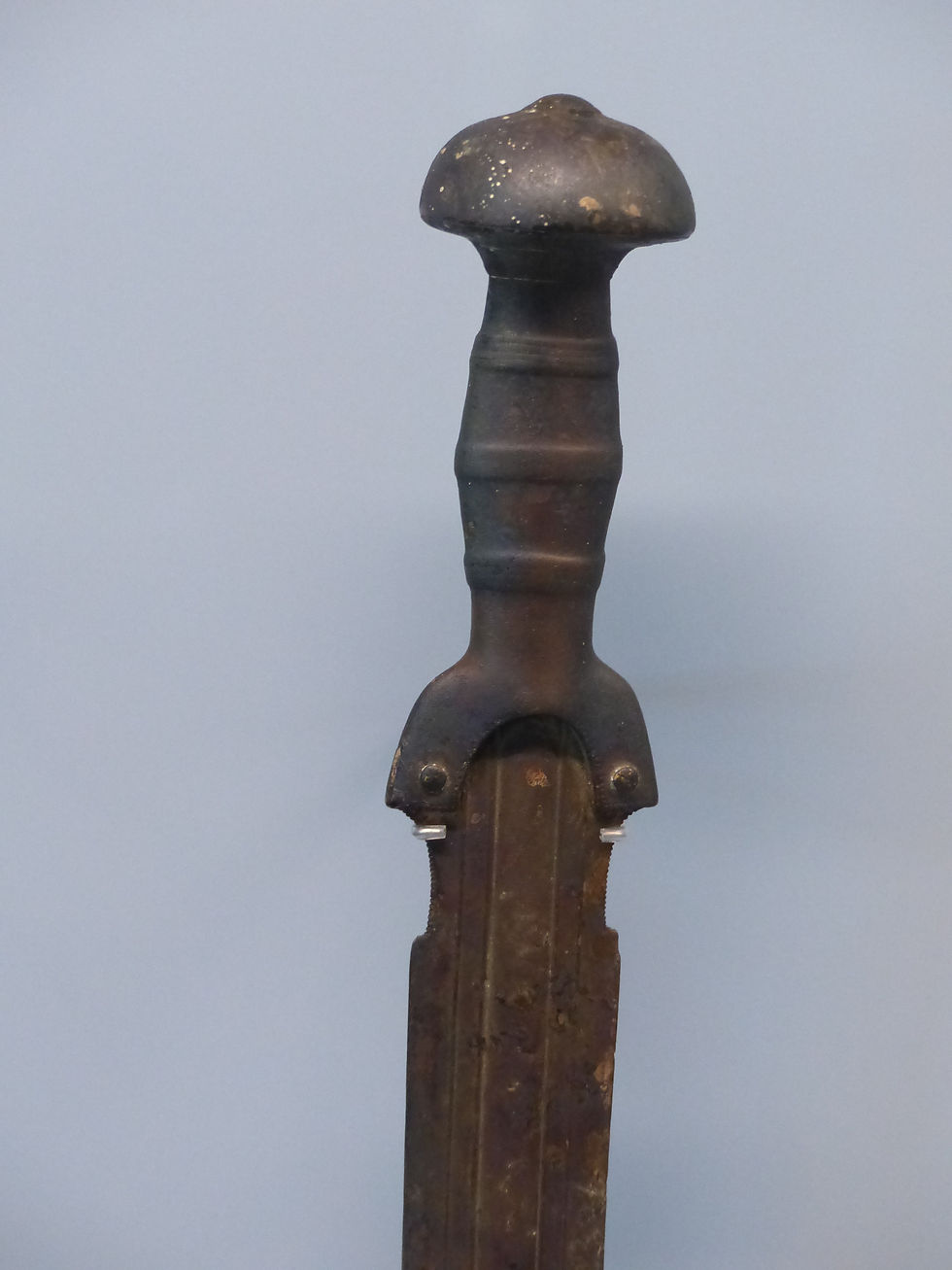 Chenets en terre cuite (bronze final), ces objets en forme de croissant évoquent des cornes de taureaux, il s'agirait plutôt d'objets votifs que fonctionnels.