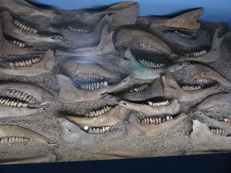 Ont été retrouvé vingt-quatre mandibules de jeunes bovins, des omoplates, des vertèbres des côtes... Tous de la même espèce, donc au moins douze bovins rustiques de petites tailles d'un poids variant de 125 à 300 kg. Ce qui représente, tout de même deux à trois tonnes de viande et qui permet de nourrir plusieurs centaines de personnes !