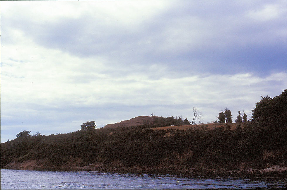 Autre curiosité : on sait maintenant que la grande dalle de 17 tonnes couvrant le dolmen est un fragment brisé d'un menhir géant de 14 mètres qui se dressait à Locmariaquer.